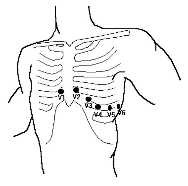 Leads) and across the left side of the chest (called the V